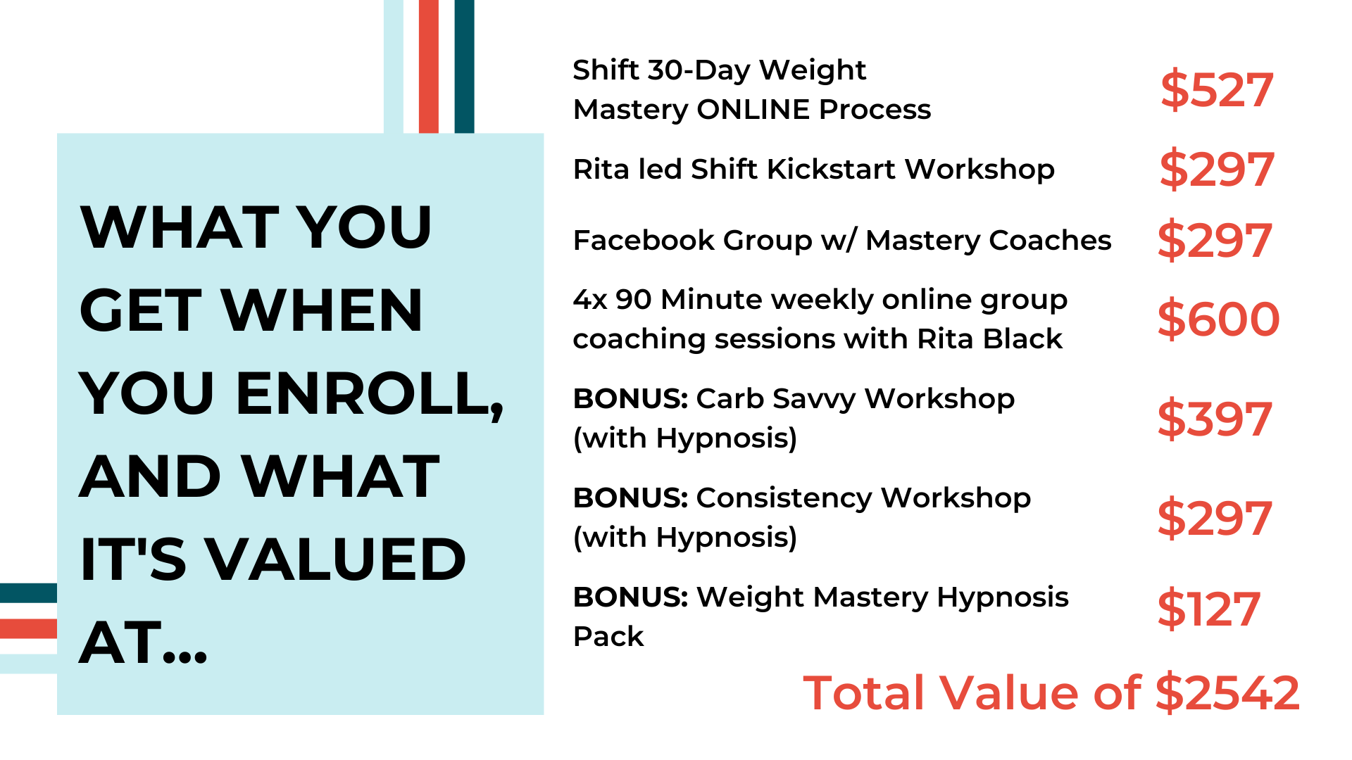 • Bonus Program: Shift Weight Mastery Hypnosis Pack ($127 Value)