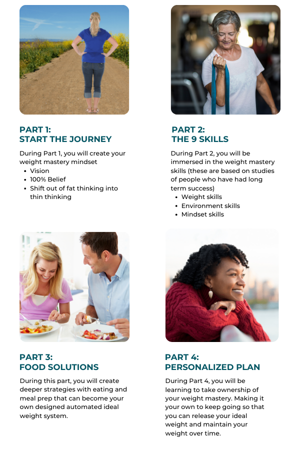 In a cutting edge 30-day process that allows you to break free from the subconscious beliefs and habits that keep you struggling and gives you the ability to release weight consistently and long-term.